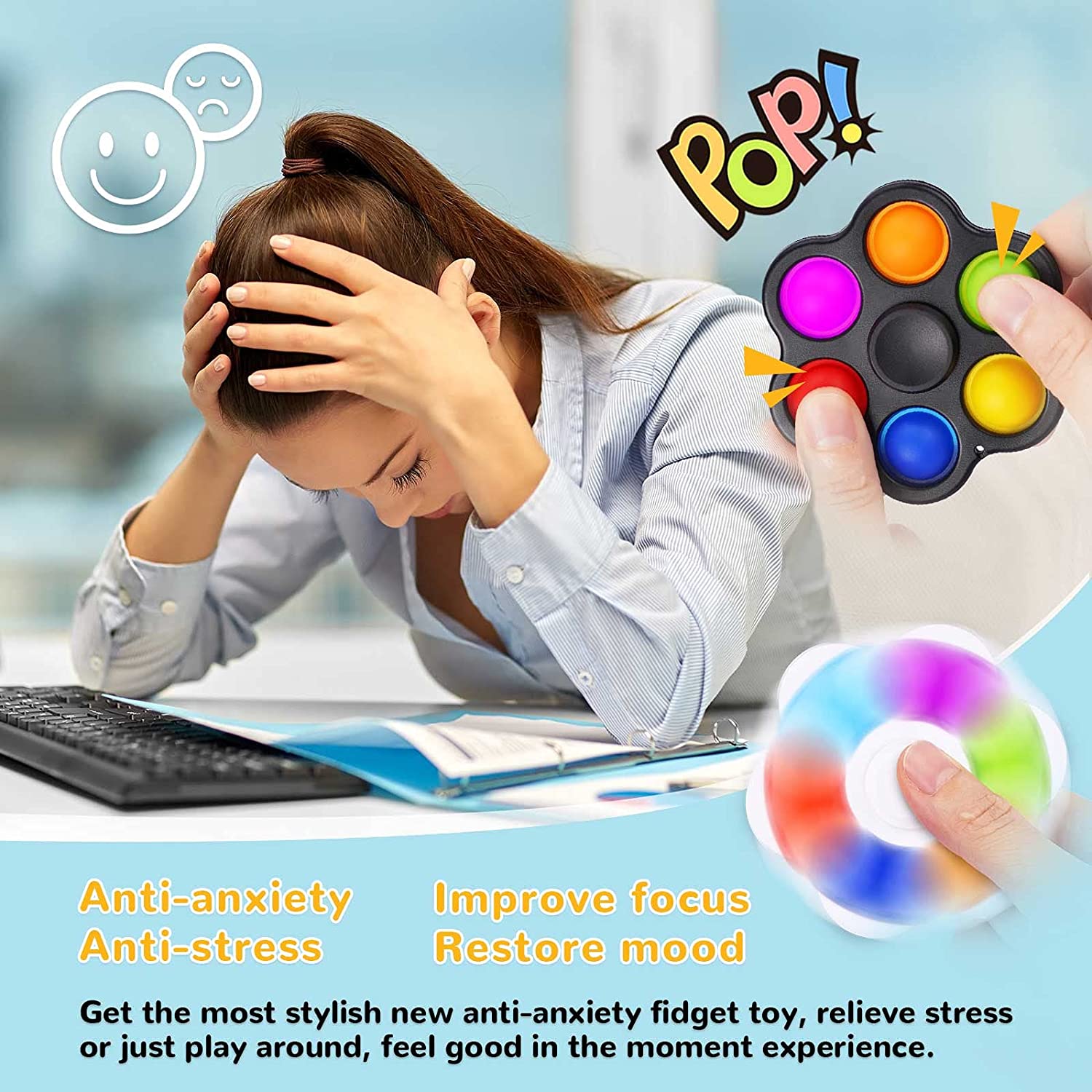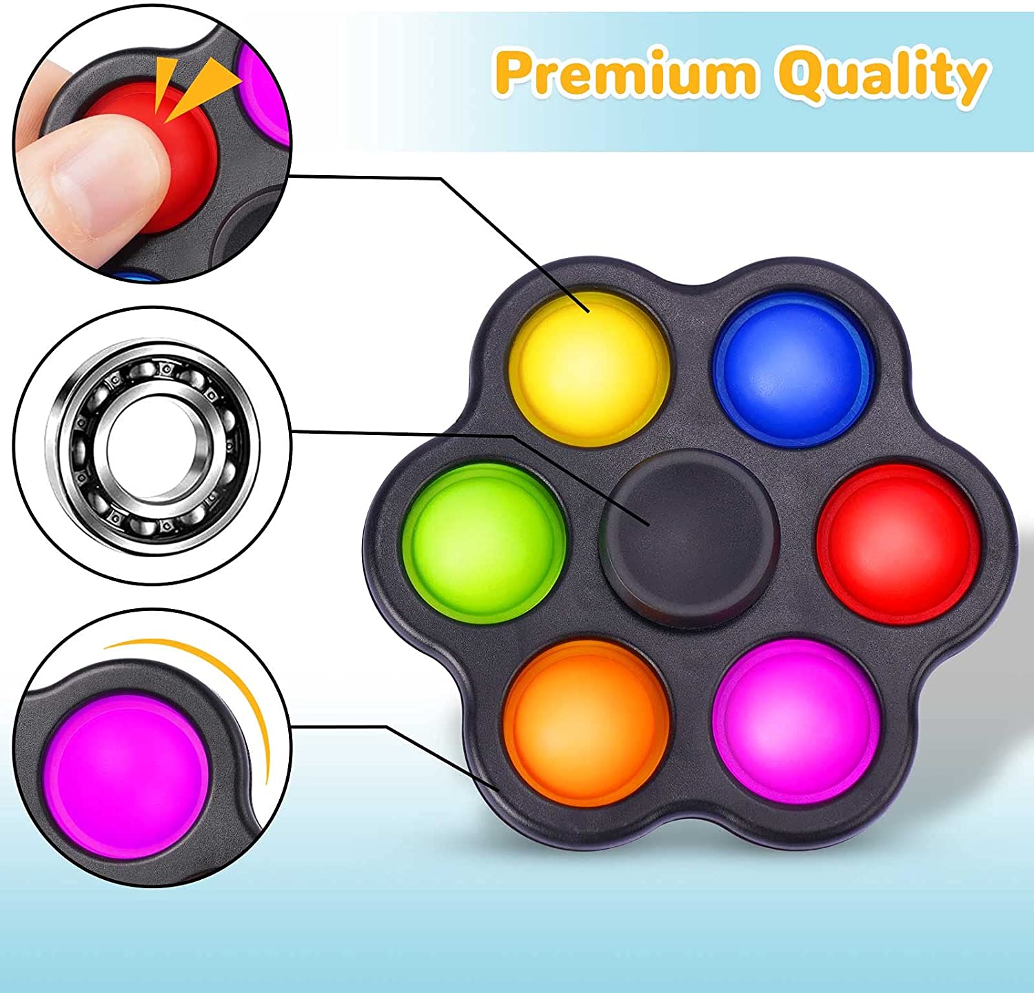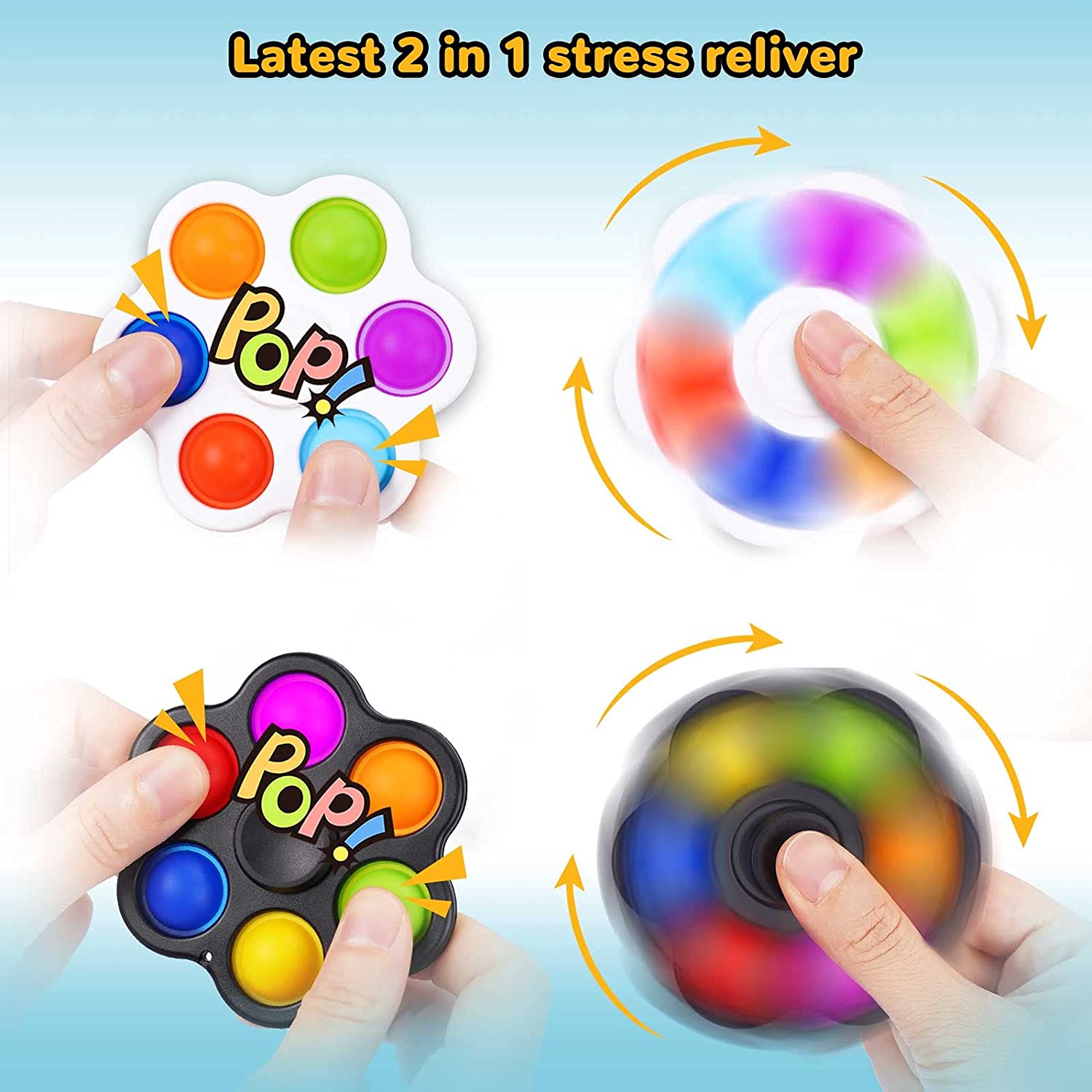 2PCS 2-in-1 Pop Fidget Spinners with Lanyards 6-Bubble Push Bubble Fidget Sens