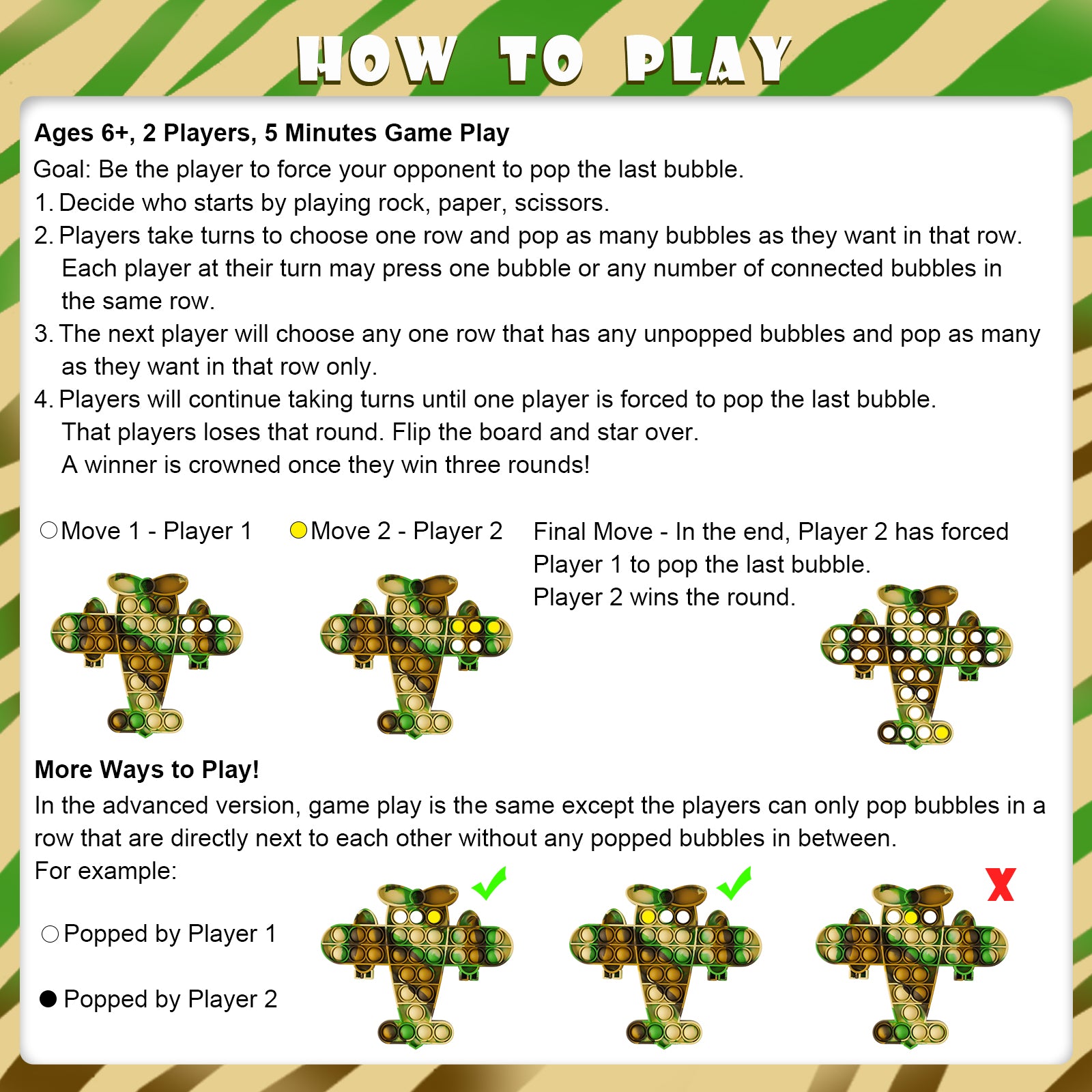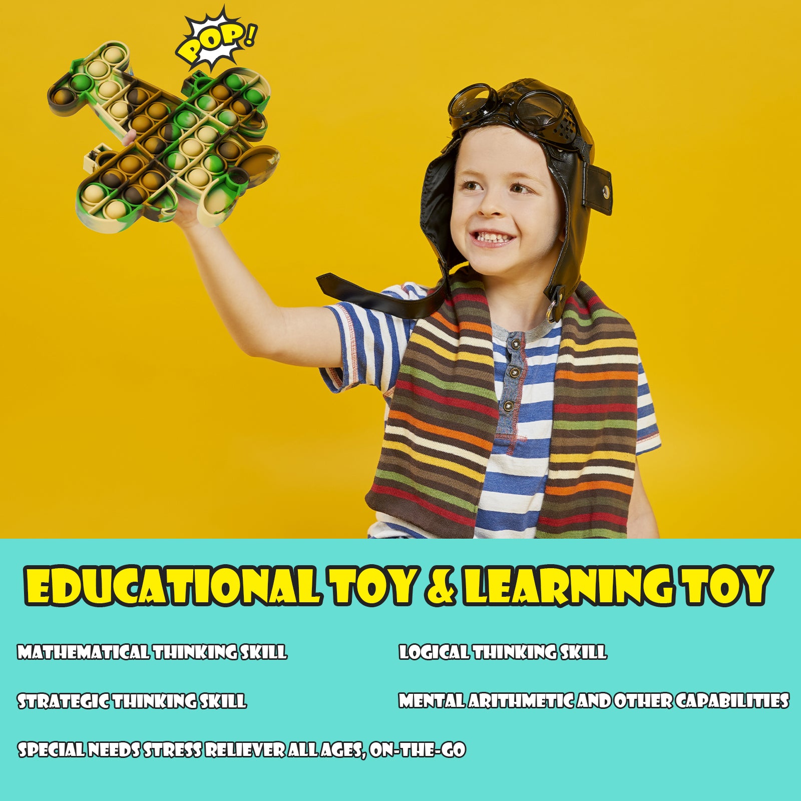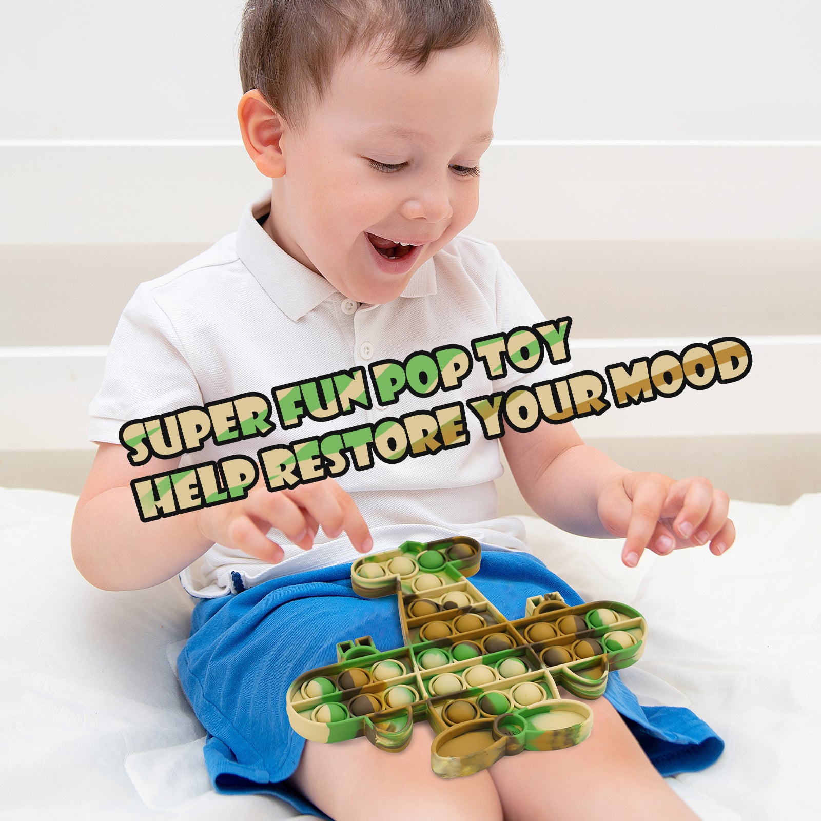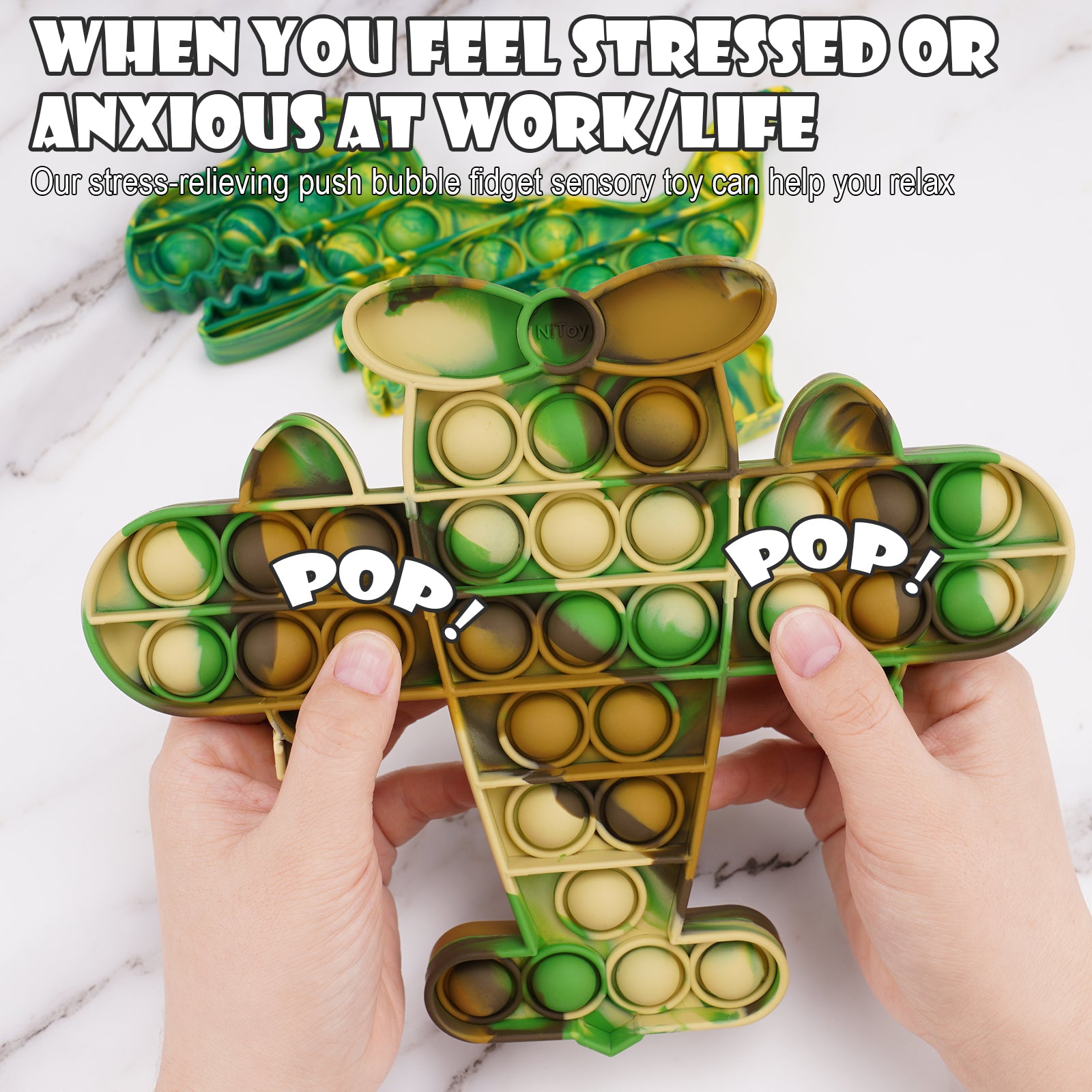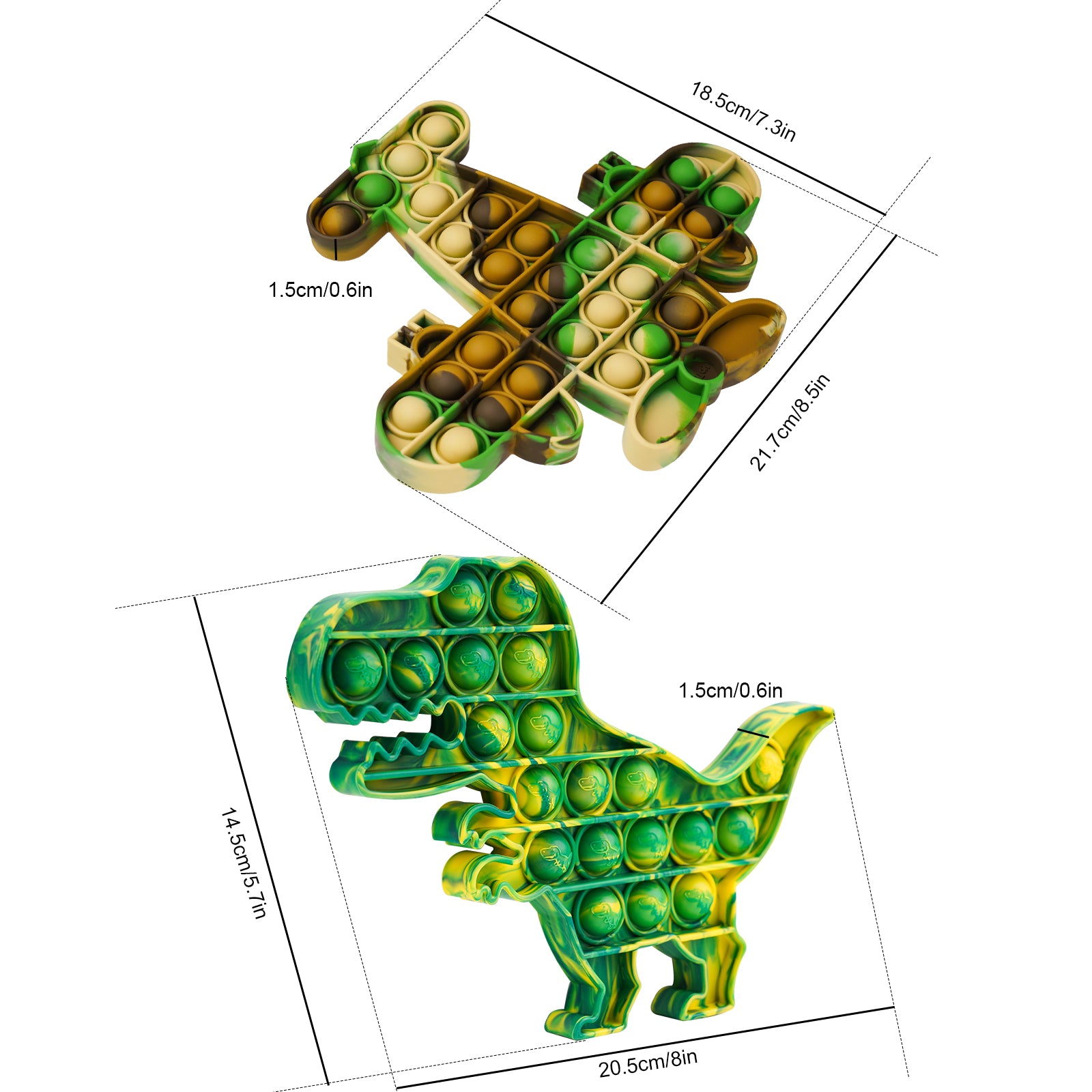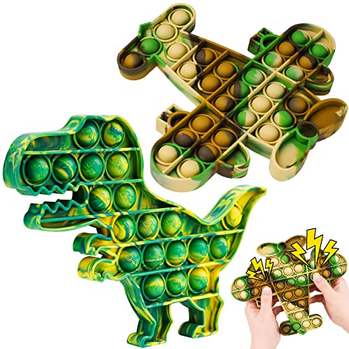NiToy 2PCS Push Pop Bubble Fidget Sensory Toy Set, Fidget Toys for Stress Anxiety Relief Bubble Popper Fidget Pack Silicone Squeeze Toy for Kids and Adults (Green Camo Airplane & T-Rex Dinosaur)
