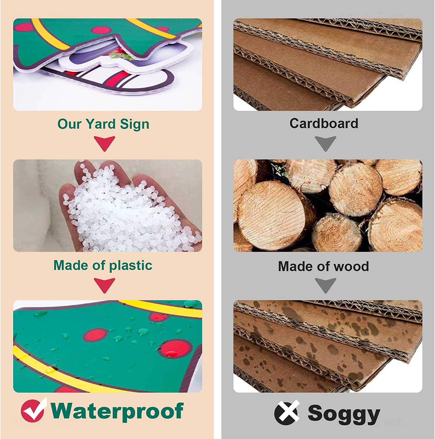 đăPremium QualityăChristmas yard sign decorations are made of corrugated plastic, which is sturdy and durable. Vibrant colors and visible shapes are printed with state-of-the-art machinery and long-lasting inks, non-fade, scratch-resistant, waterproof, windproof, corrosion resistant and can be kept well under bad weather. The set is easy to store and reuse with proper care.