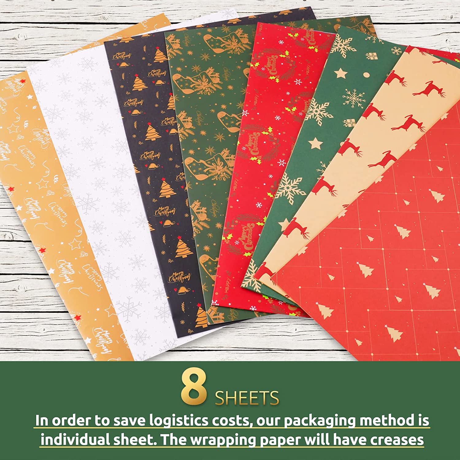 Christmas Holiday Wrapping Paper 8 Pattern 28x20 Matte Glossy Finish Kraft Paper