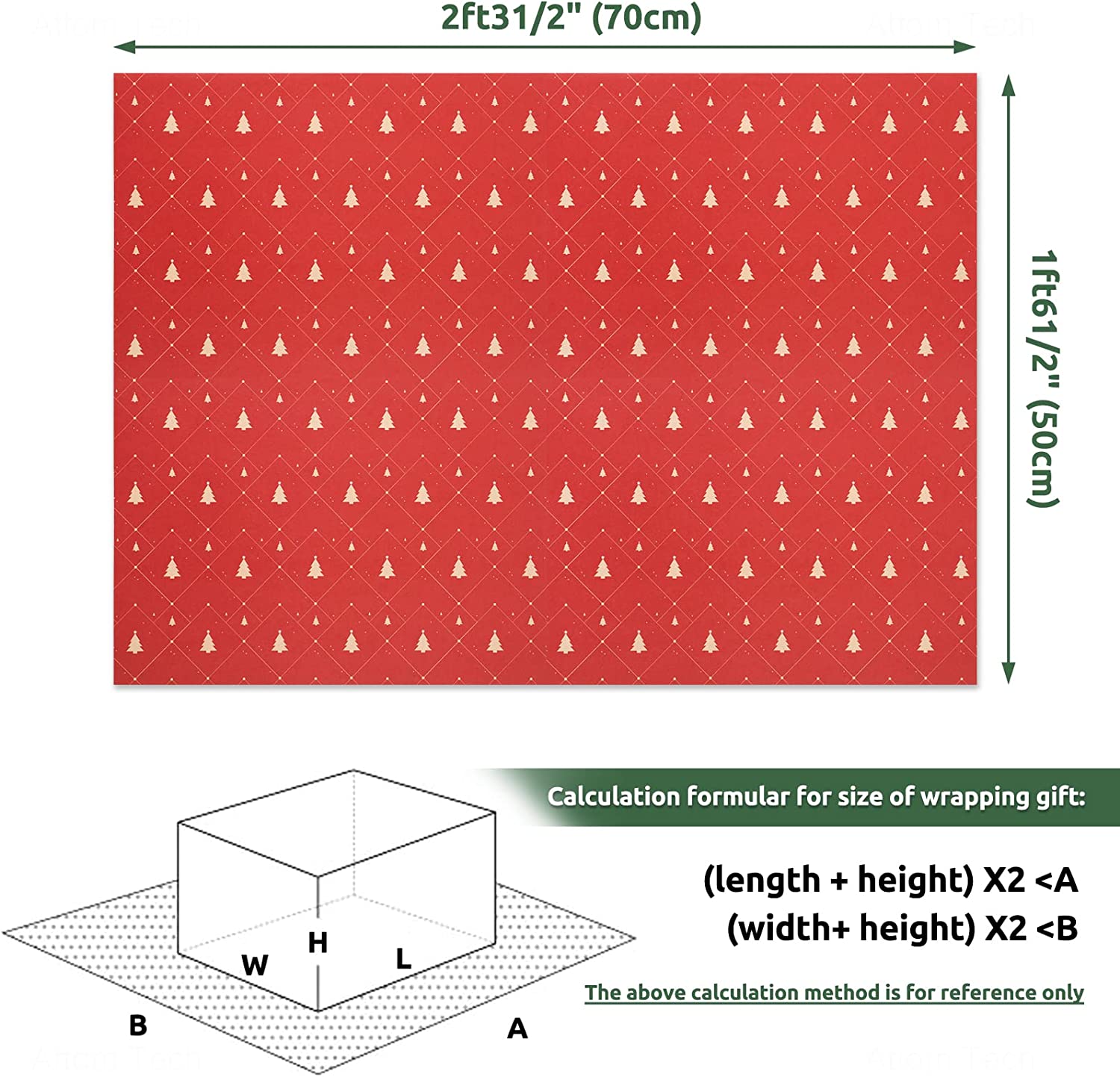 đăApplication OccasionsăThe thick commercial-grade graphic-rich wrapping paper is perfect for holidays, Christmas, birthdays, parties, weddings, get-togethers, special events and other seasonal gifting needs. Suitable for sharing with your family and friends. Get into the Christmas spirit with this elegant wrapping paper set to add the finishing touch to any gift. Please don't store them in direct sunlight to prevent color fading.