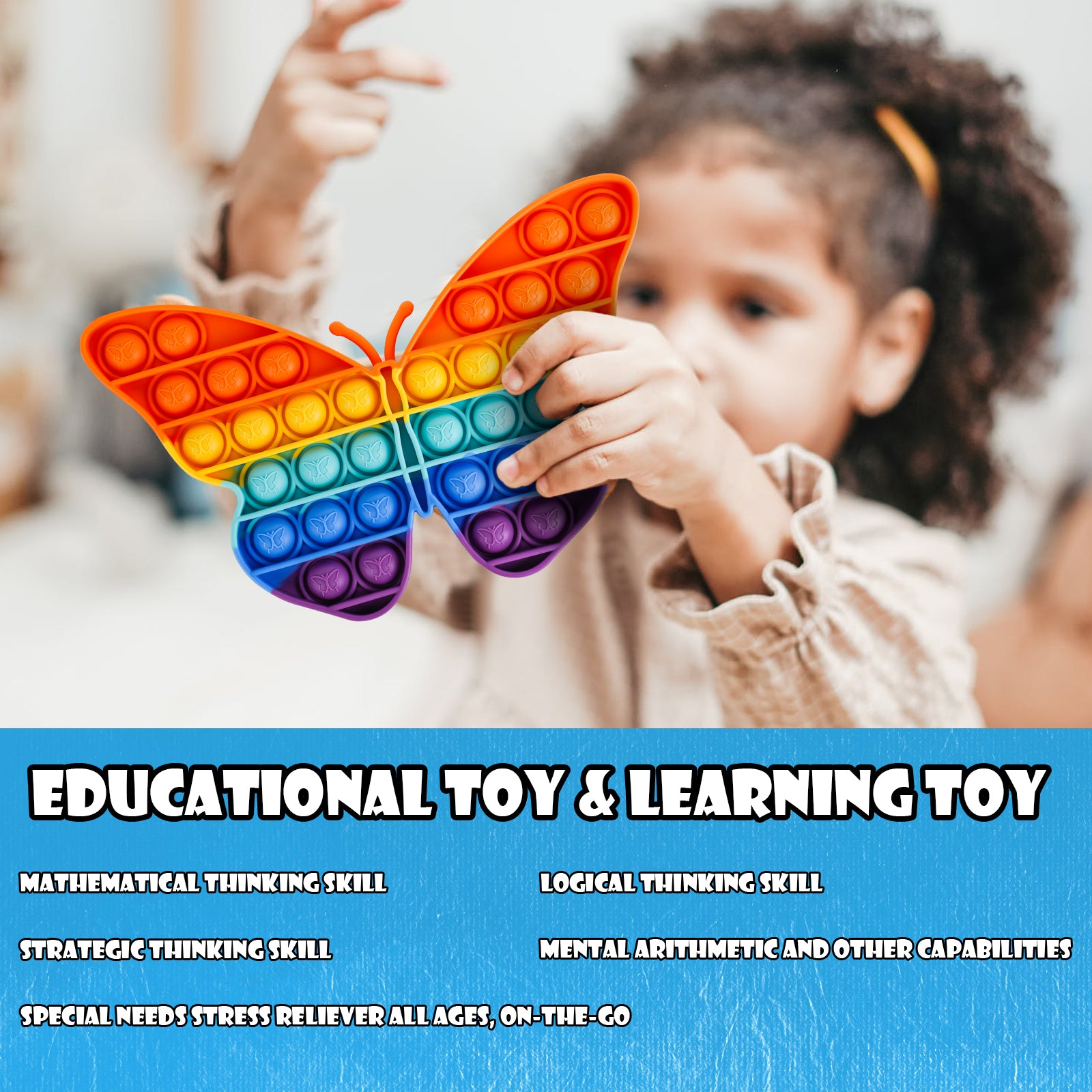 NiHealth Fidget Pack 2-Pack Push Pop Bubble Fidget Sensory Toy, Fidget Toys for Stress Relief Bubble Popper Fidget Toy, Silicone Squeeze Toy for Kids and Adults (Rainbow Colors Butterfly + Cloud)