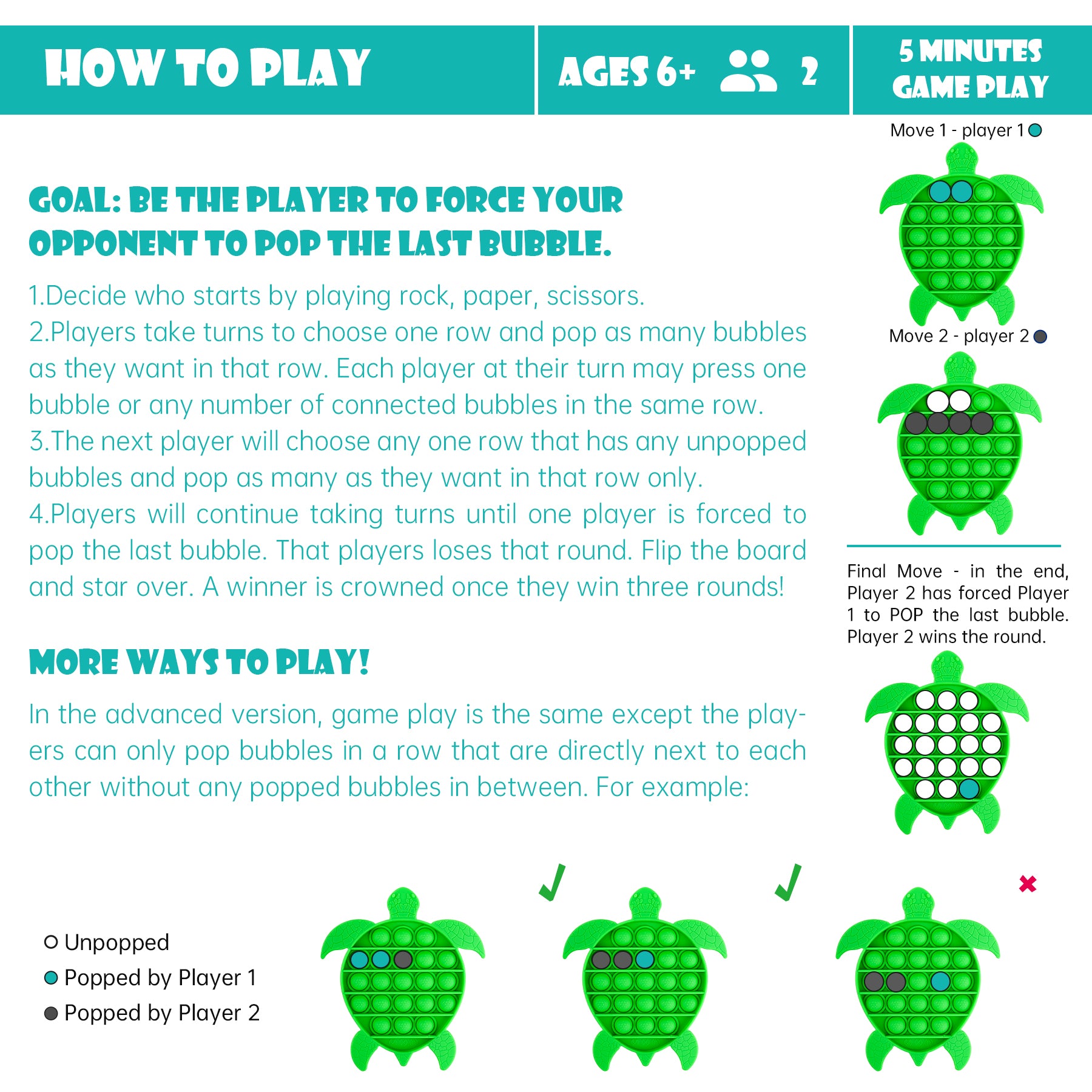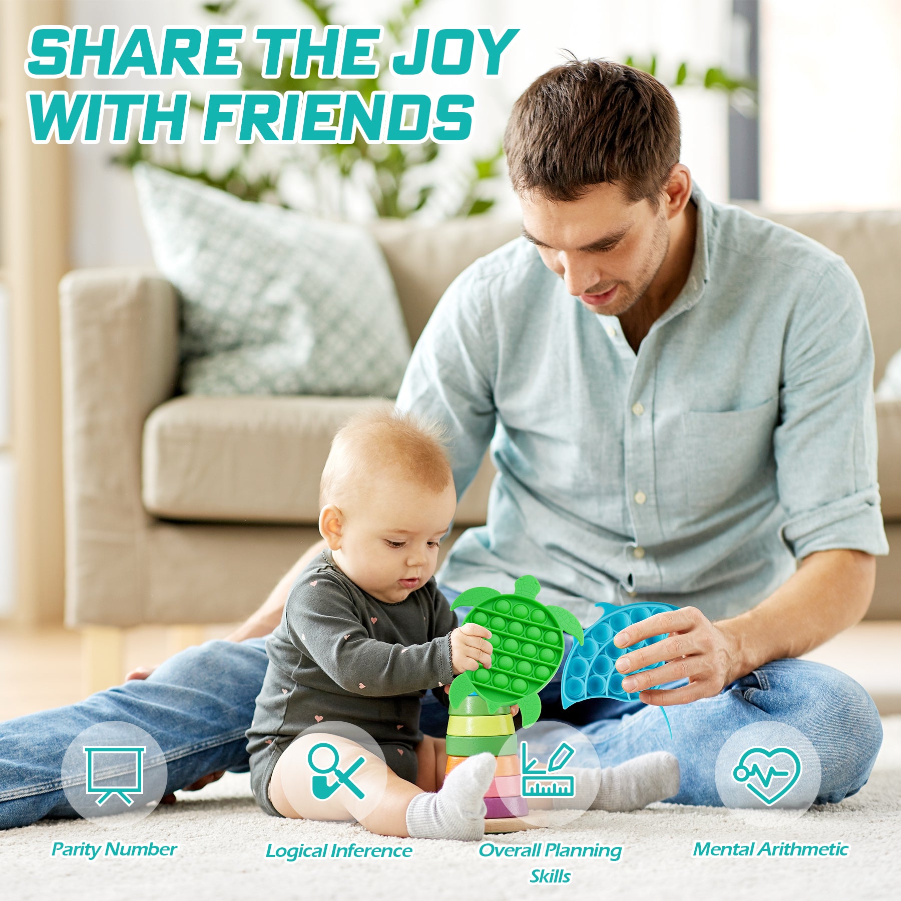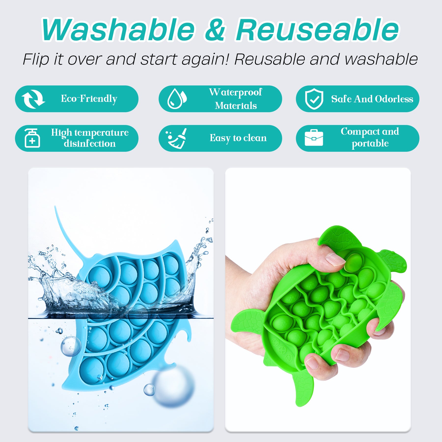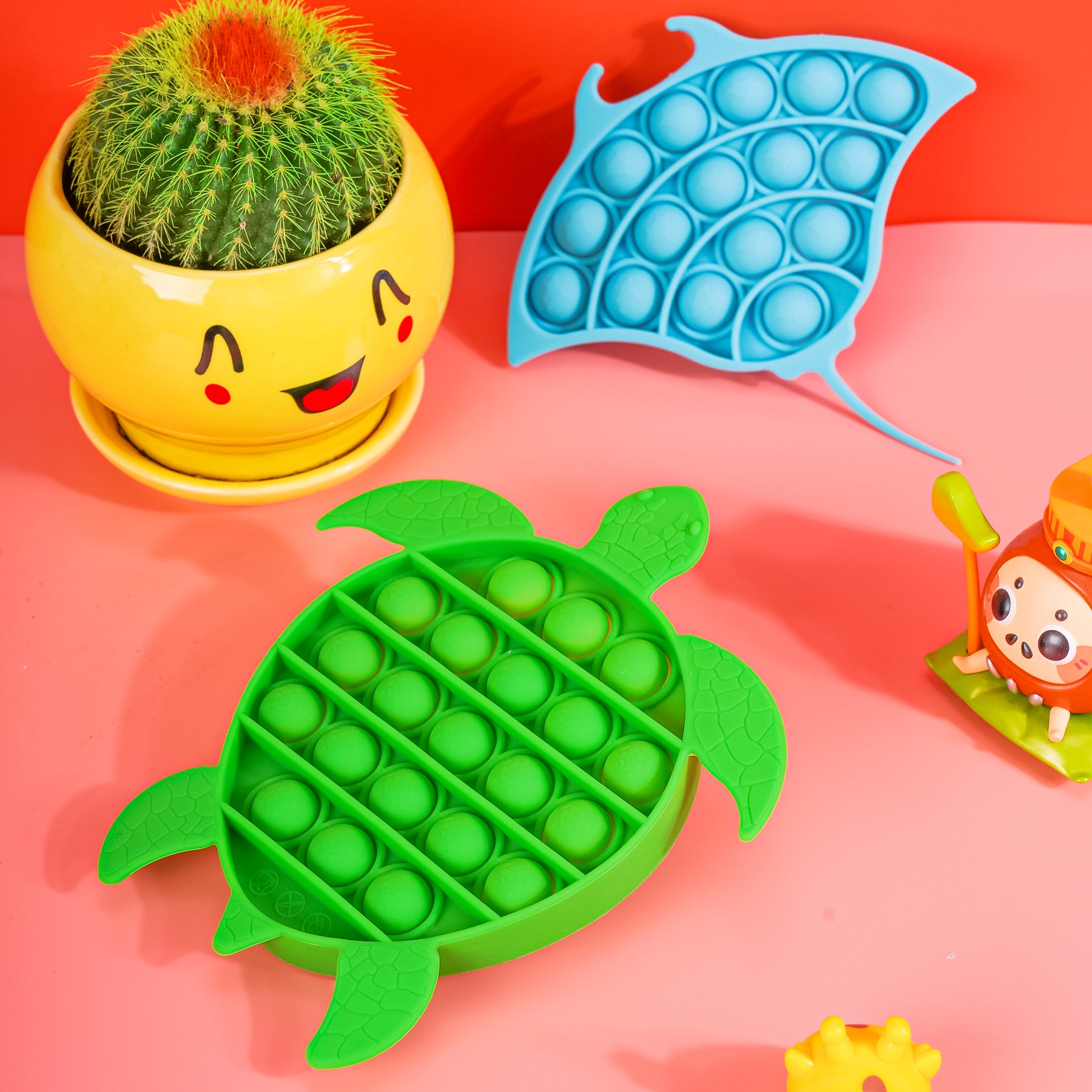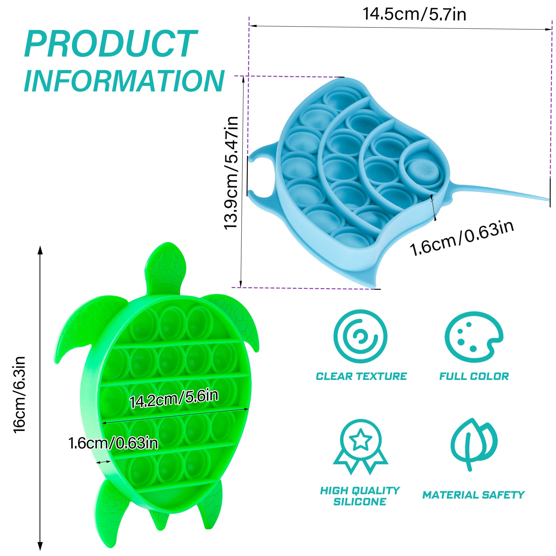 NiHealth Fidget Pack 2PCS Push Pop Bubble Fidget Sensory Toy Set, Fidget Toys for Special Needs Stress Reducer Anxiety Relief Popper Game, Silicone Squeeze Toy for Kids and Adults (Stingray & Turtle)