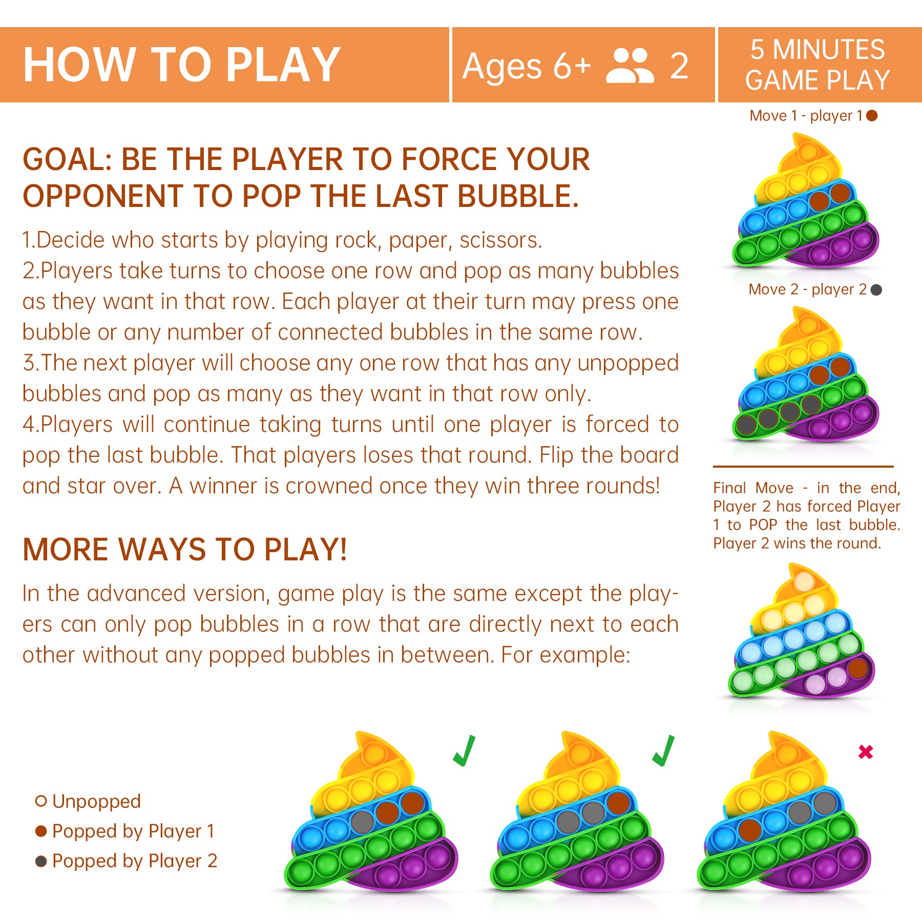 NiHealth Fidget Pack Push Pop Bubble Fidget Sensory Toy, Fidget Toys for Stress Relief Bubble Popper Fidget Toy, Silicone Squeeze Toy for Kids Adults (Rainbow Poop)