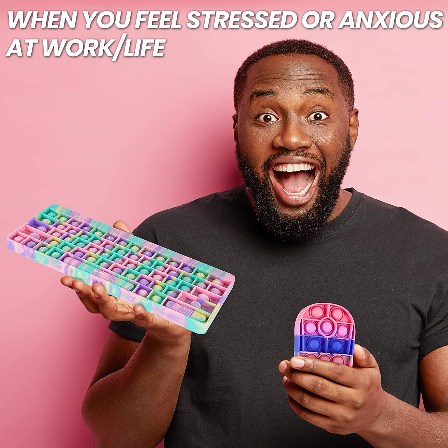 🔴【Effective Stress Reliever】Ever caught your child, or maybe even yourself, popping the bubble wrap of a package? Then you'll love these toys. The bubble popping toys have a quiet side and a loud side, and the pressing and popping sound can effectively release muscle tension to work off your nervous energy. Ideal fidget toys for kids and adults with stress and anxiety, and they will encourage tactile stimulation, calmness and concentration. Perfect for various preferences and occasions.
