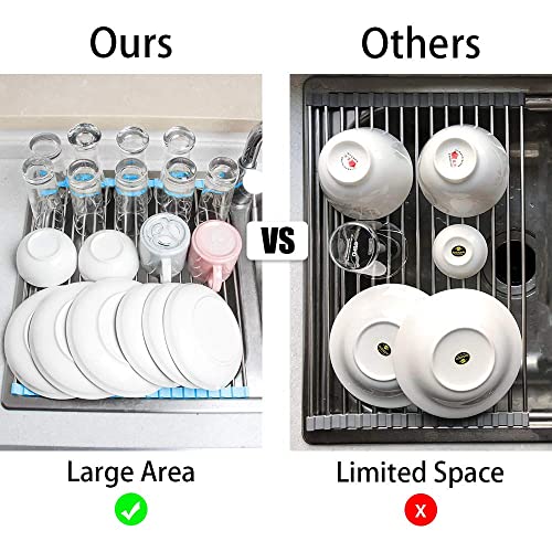 [Size: 17.7"x 15.5"] Rectangular design for maximum stacking ability to efficiently dry dishes and proper drainage and ventilation. Important: check your sink size before purchase.