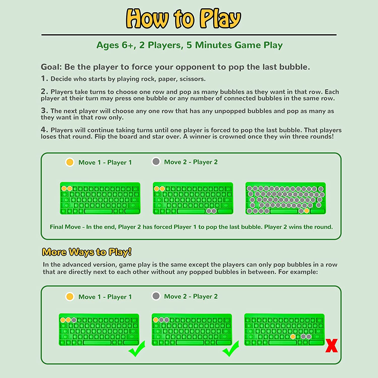 💖【Premium Quality Silicone】This new popping toy is made of high-grade silicone that's safe and durable. It's resistant to falling, abrasion and extrusion, reusable and washable. You can rest assured to buy this sensory toy for young children or the elderly, since it is BPA-free, non-toxic, odorless, soft, wear-resistant and can be repeatedly pressed for a long time. It's a tactile delight to touch, press and pop. For ages 3+.